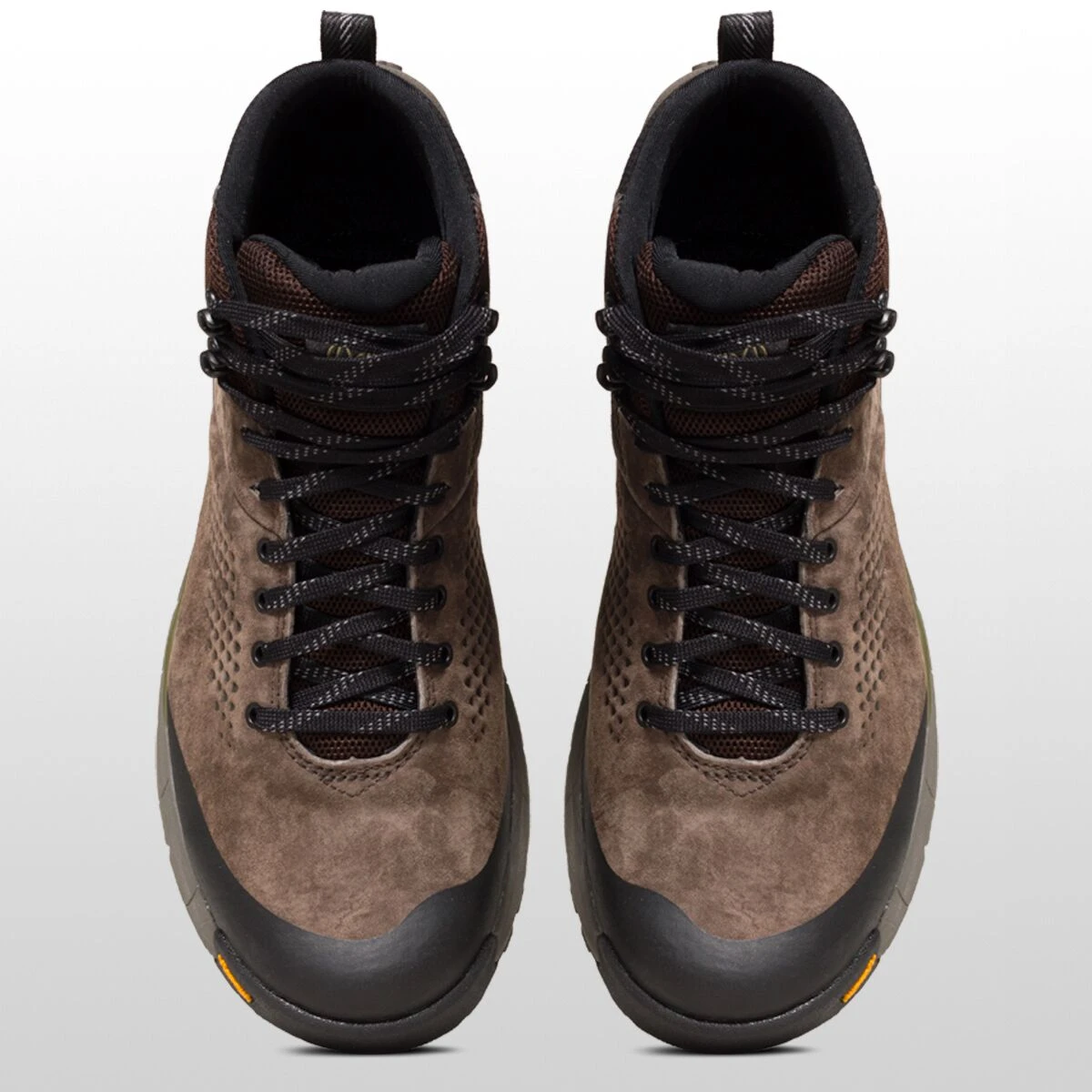 The Danner Trail 2650 GTX Mid Hiking Boot pushes us through the hike while providing premium materials to make ready for the next excursion. The durable and lightweight suede and textile upper defends from abrasion, while the GORE-TEX lining offers waterproof and breathable protection on soaked hiking trails. the reinforced heel counter and TRAILGUARD platform offer maximum support, and an added TPU shank increases torsional stiffness for scrambling up steep, rocky ascents. An OrthoLite footbed and EVA midsole provide superior cushioning and shock absorption. To keep our feet planted and secure, the Vibram 460 sole with Megagrip technology prevents slipping and sliding on loose surfaces in any conditions.