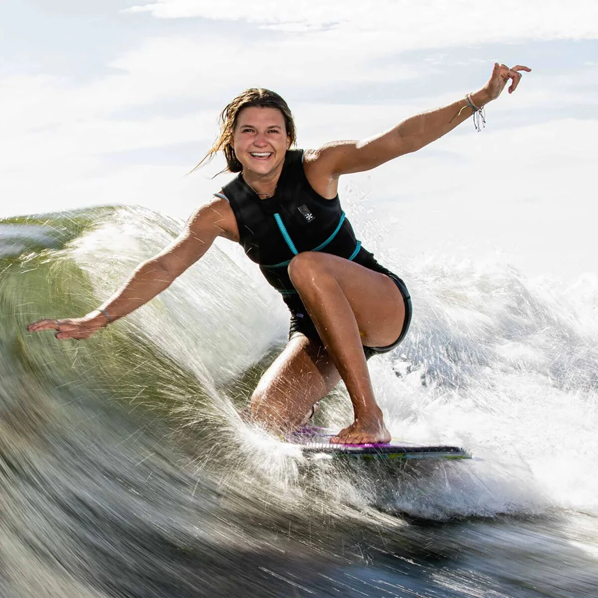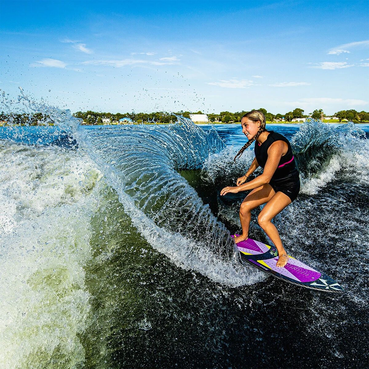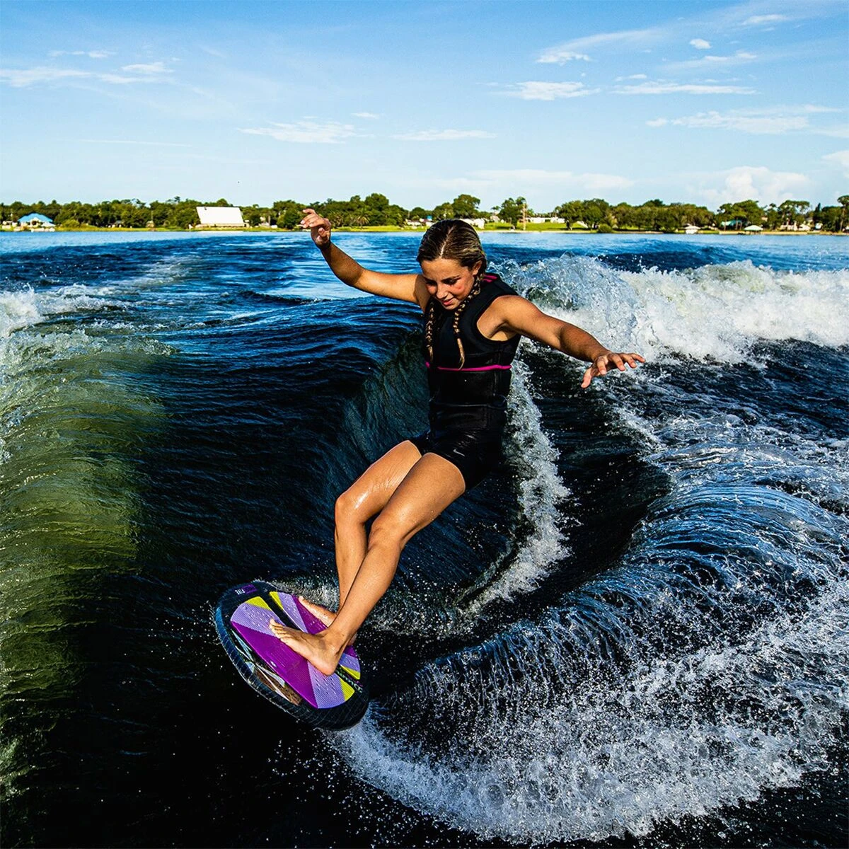 - Thin, low-volume shape ideal for tricks and playful wake maneuvers