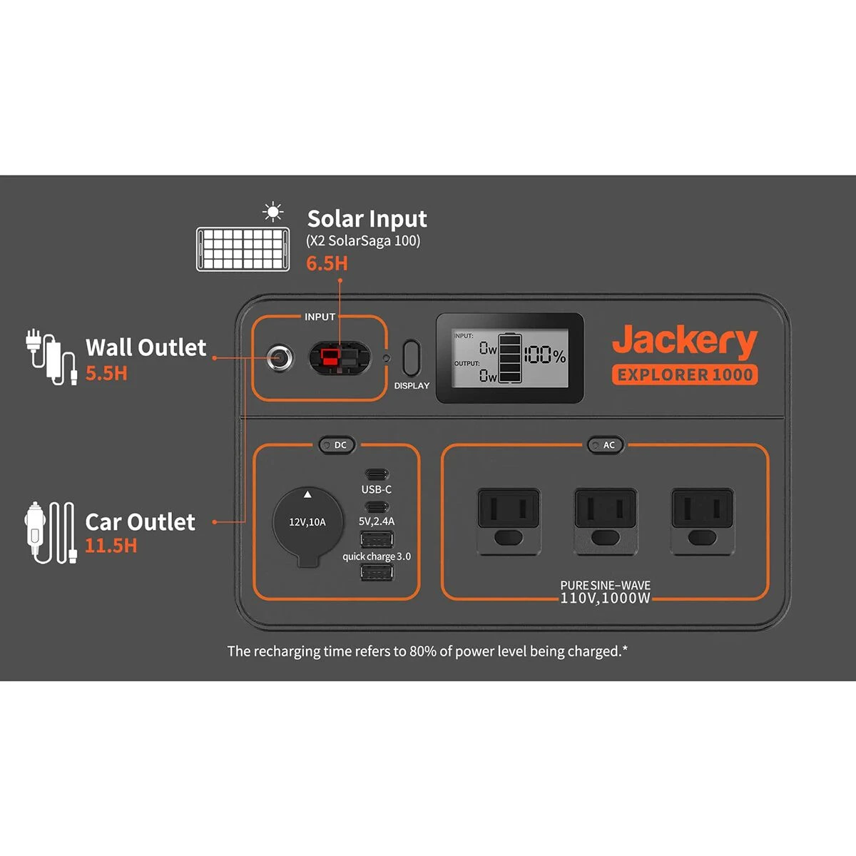 - USB-C, USB-A (5V/2.4A, quick charge 3.0), 12V/10A car outlet, 1000W AC