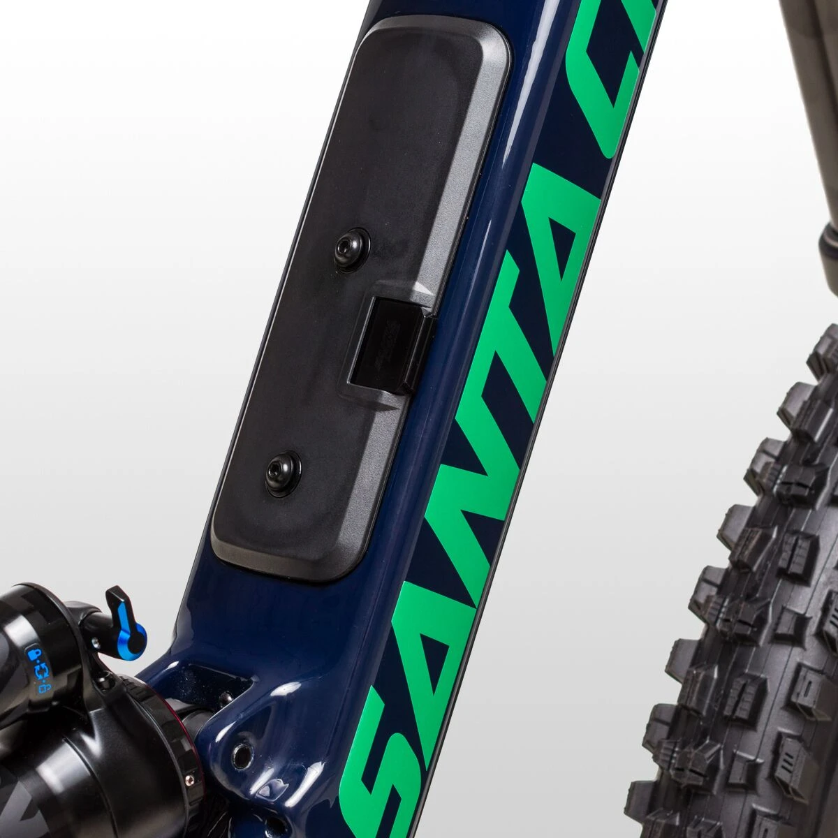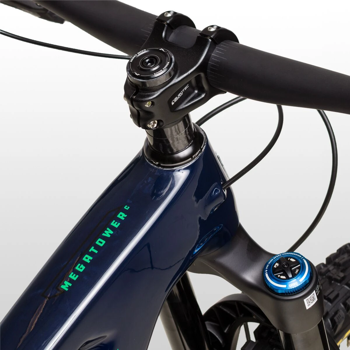 Situated as the flagship enduro race bike from Santa Cruz, we’re happy to tackle sustained descents and all-day adventures aboard the Megatower Carbon C GX Eagle AXS Mountain Bike. We’re equally stoked about the V2 Megatower’s new Glovebox frame storage system as we are about its updated suspension and geometry. 165mm of lower-link VPP travel continues to provide the stable traction at speed that Santa Cruz bikes are known for, yet simultaneously sits high in the travel while climbing for an energetic pedaling platform. Size-specific chainstays (which Santa Cruz refers to as ‘rear center’) provide the perfect balance between straight lining stability and cornering maneuverability. Another key geometry update is the 77.5-degree seat tube angle (in the low setting) which provides an ideal pedaling position for long days in the saddle. The integrated Glovebox frame storage system lets us stash all kinds of goodies from tubes to windbreakers and more right in the frame.