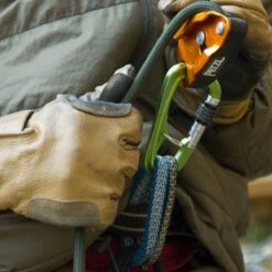 - Internal gate keeps the carabiner properly aligned on the belay loop to prevent cross loading