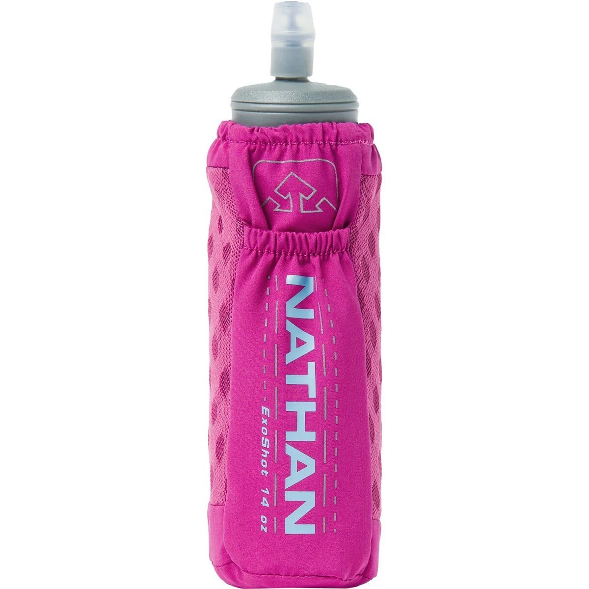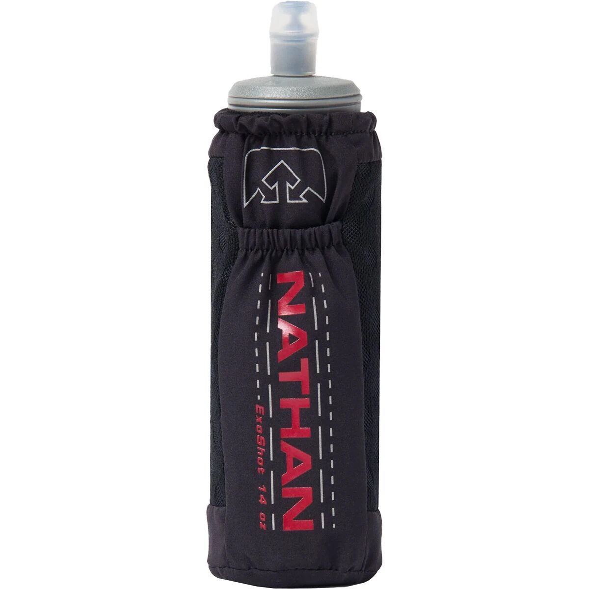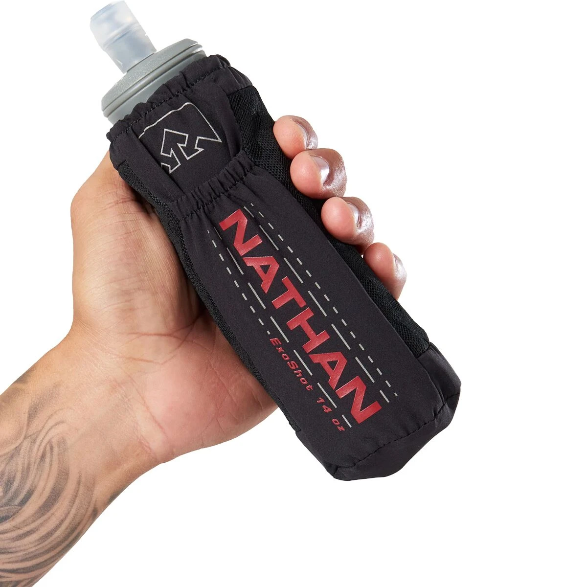 Ergonomically-shaped for comfortable drinking at full speed, the Nathan ExoShot 12oz Water Bottle delivers easy-drinking convenience for serious runners and trail enthusiasts. This shaped soft flask features an integrated ExoSpine for easy handling on the move, as well as compatibility with Nathan’s hydration packs. Its adjustable, removable hand strap allows you to focus on the path ahead without worrying about keeping a steady grip. Additionally, the expandable stash pocket handily stores energy gels and small snacks, as well as daily necessities, such as cash and keys.