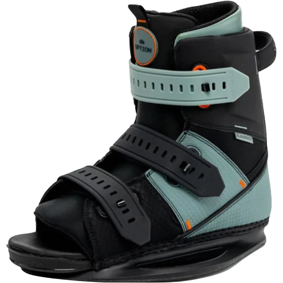 The Slingshot Sports Option Boot balances the convenience of an open-toed boot with the control of a closed-toe boot. The open-toed design and gummy straps allow this boot to be used by multiple wakeboarders on the same day without sacrificing control.