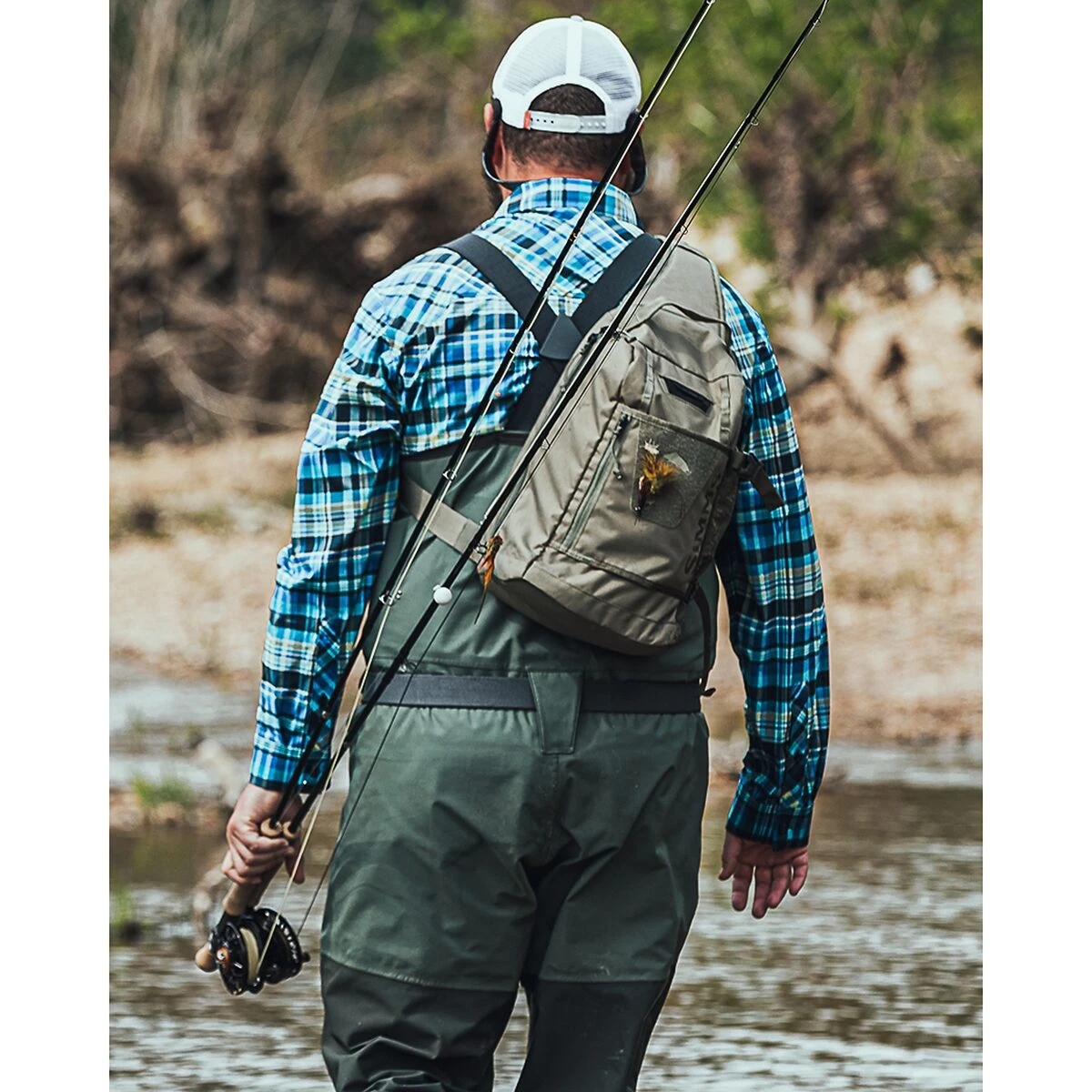 We keep our hands free for casting without worrying about our equipment, so long as it’s stashed on our backs in the Tributary Sling Pack. This minimalist fishing bag has just the right amount of space for an easy day on the water with plenty of organizational features to keep things simple. The shoulder strap has extra stability with a sternum buckle that prevents the pack from sliding.