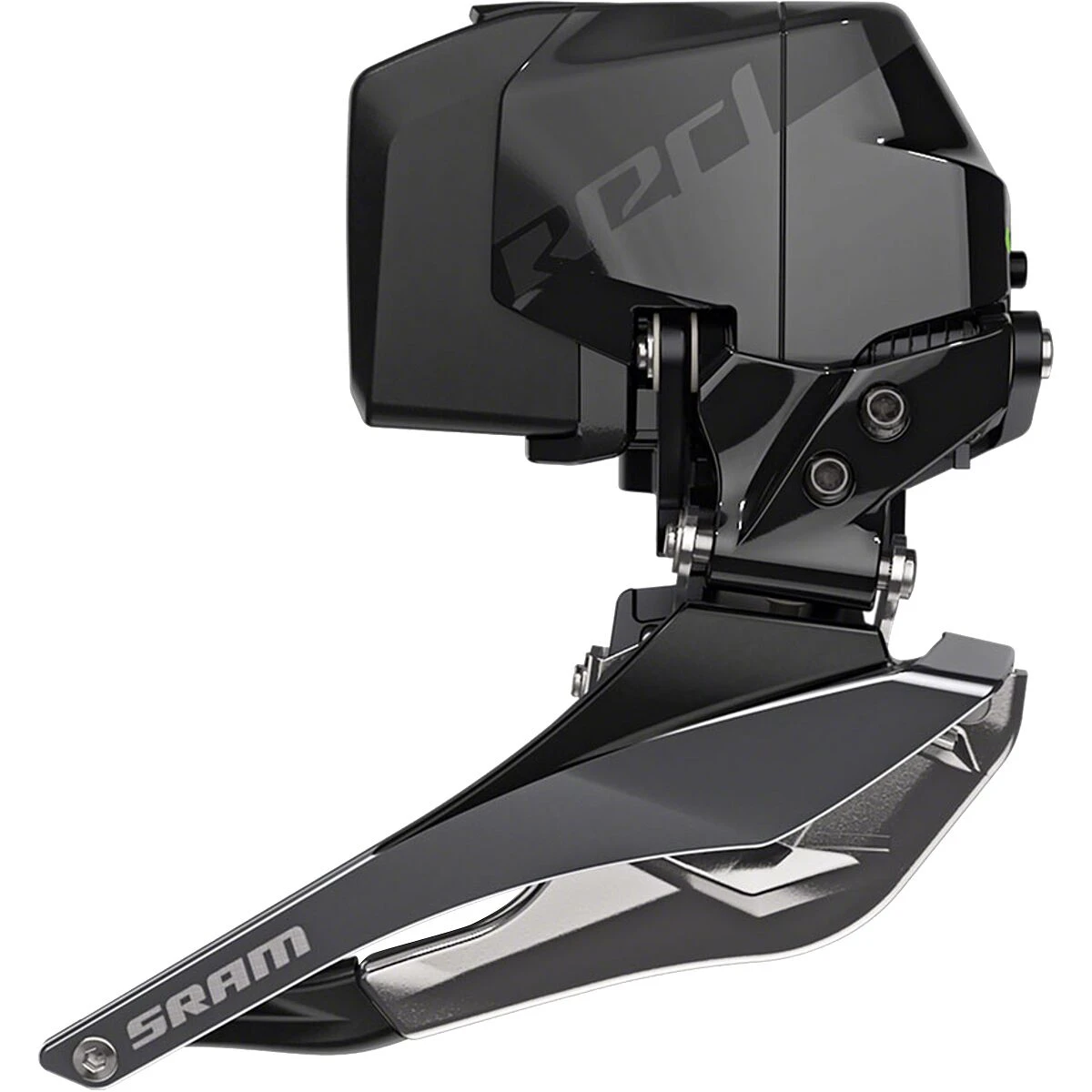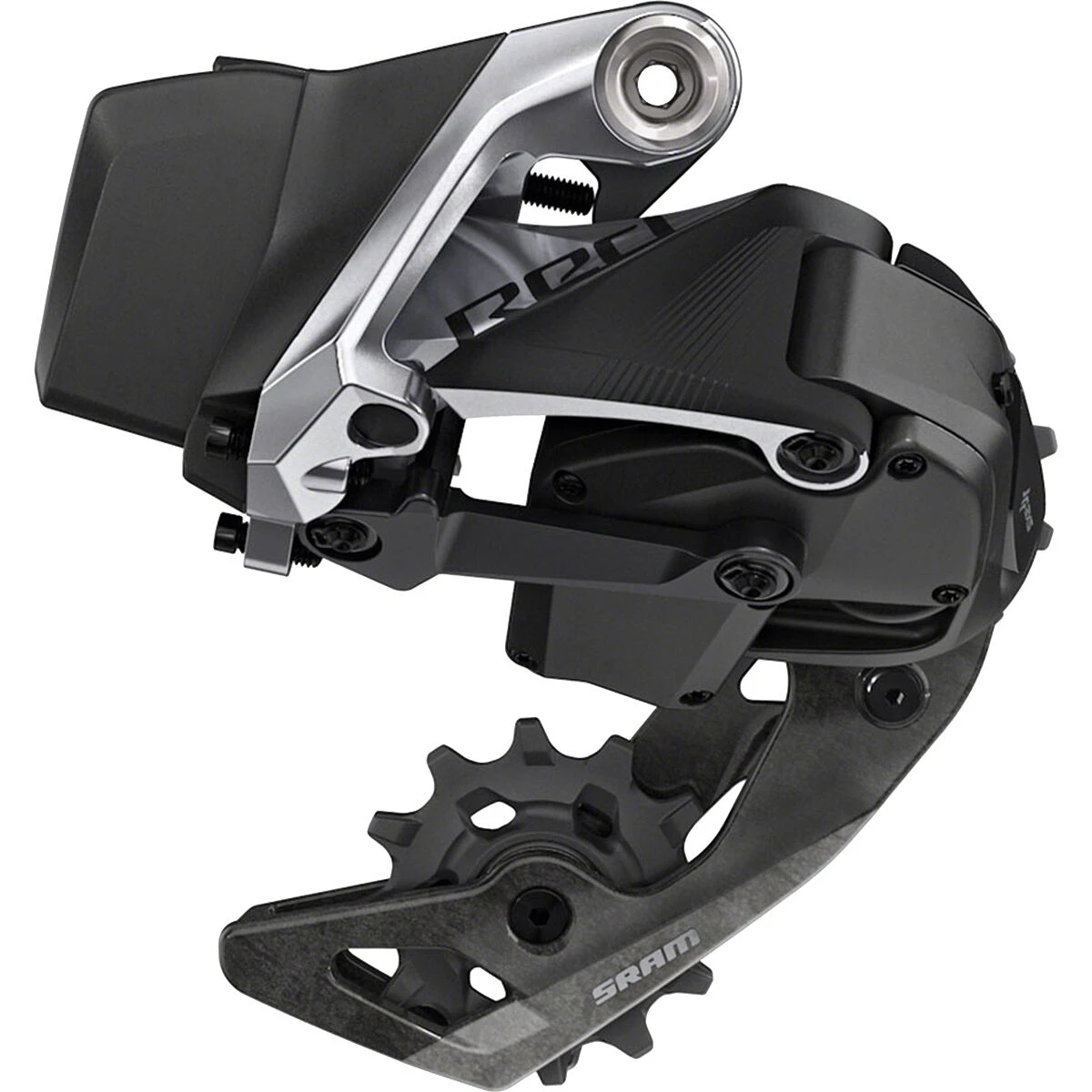 The new RED eTap AXS front derailleur returns with SRAM’s excellent Yaw pivot design for trim-free cage operation. It rotates slightly when shifted into the small ring improving shifting while also preventing chain rub, no matter where it is on the cog out back. It also features an optimized cage profile for the new close-ratio (33/46, 35/48, and 37/50) X-Range front chainring combinations for smooth and quick shifting. Made from a combination of aluminum, steel, and composite, it offers the best durability and the lightest weight. It’s completely compatible with existing eTap batteries and gravel riders rejoice: its battery placement is streamlined to allow for more rear tire clearance which SRAM claims is up to 700c x 42mm.