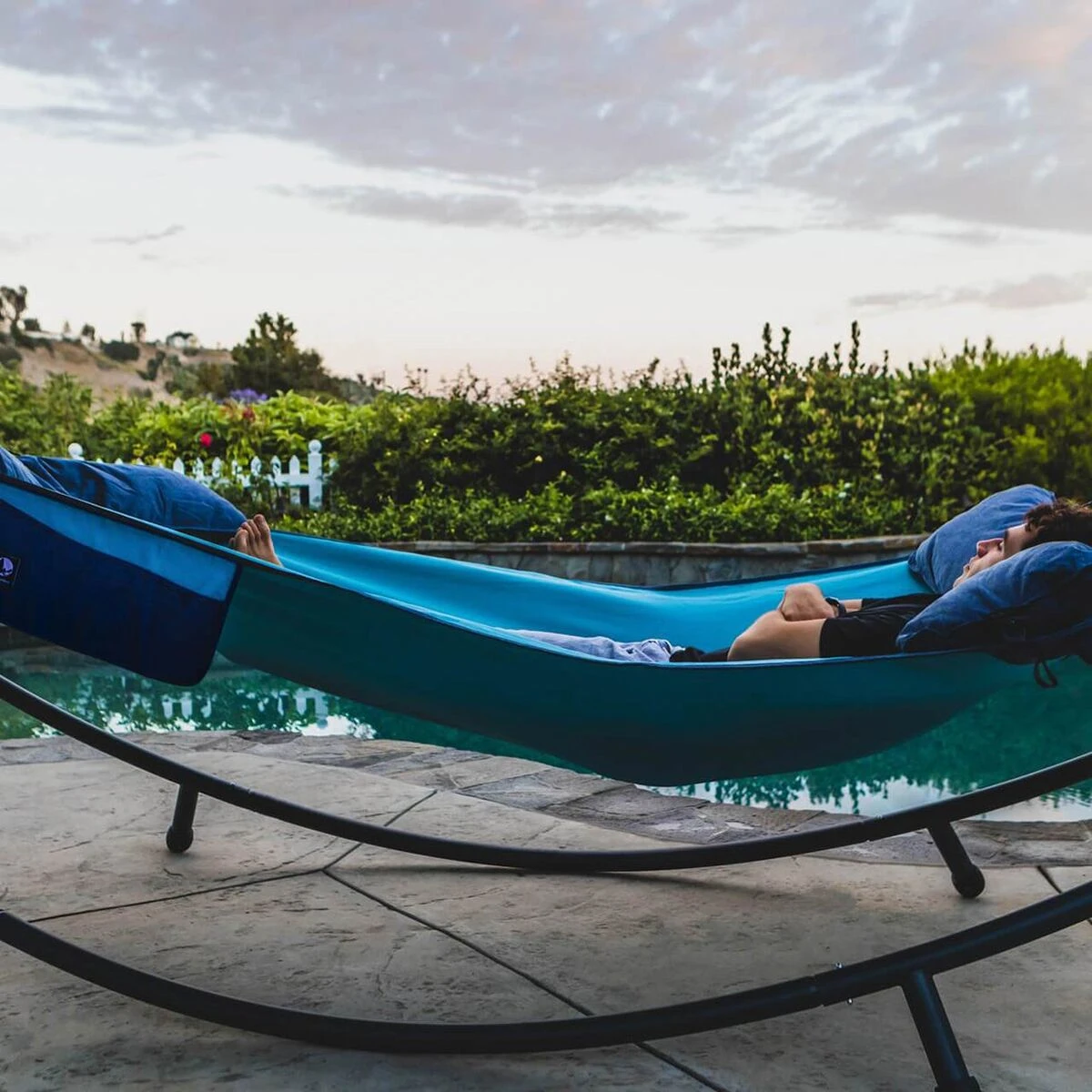 >When it’s too hot for a hike and we know the lake is packed with people, we chill out in the shade, curled up in the comfort of the SuperNest SL Hammock. The integrated pillows and easy-to-reach storage pockets offer the height of backyard luxury, and the engineered mesh body boosts breathability so we won’t overheat in the summer sunshine.