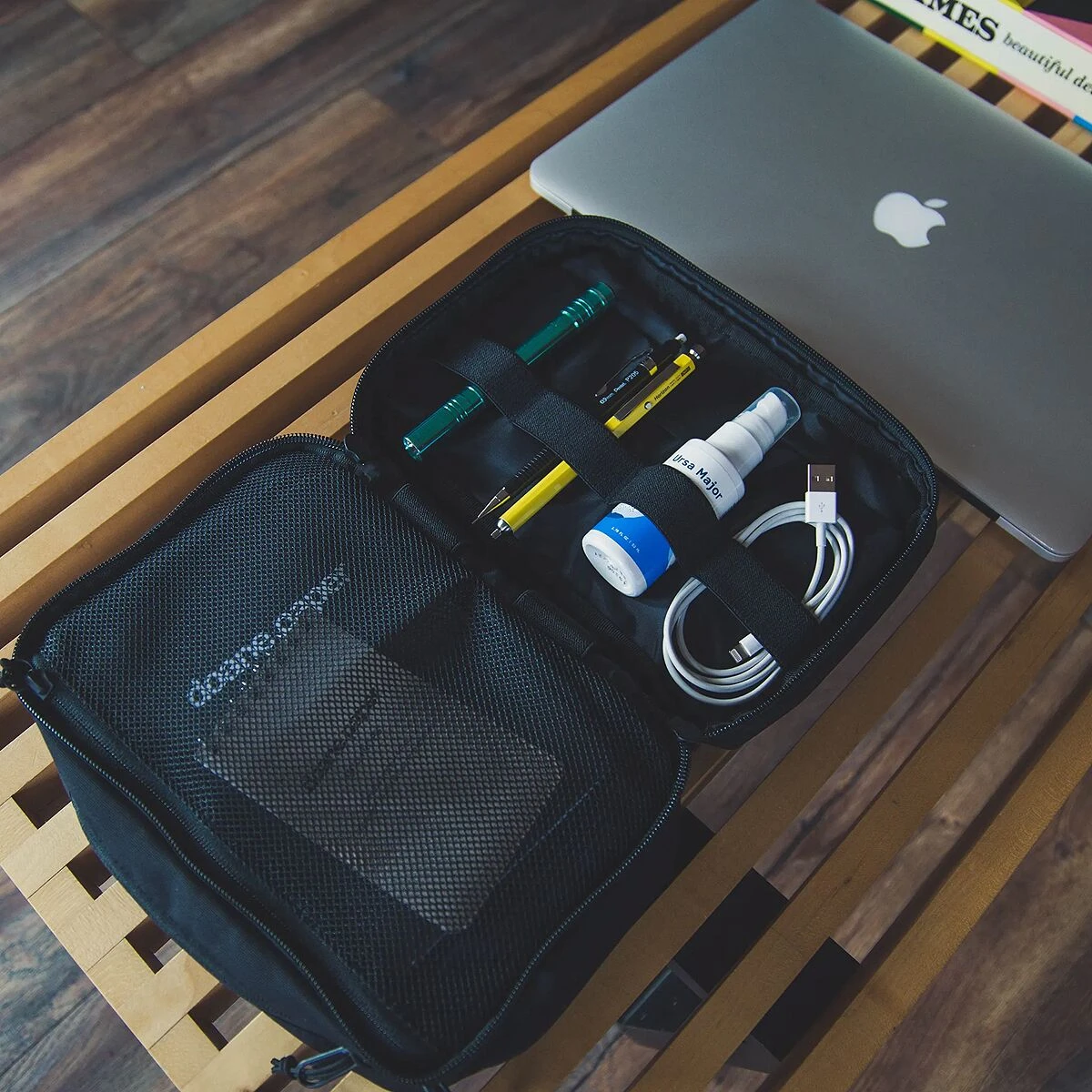 - Padded carrying case for organizing small essentials