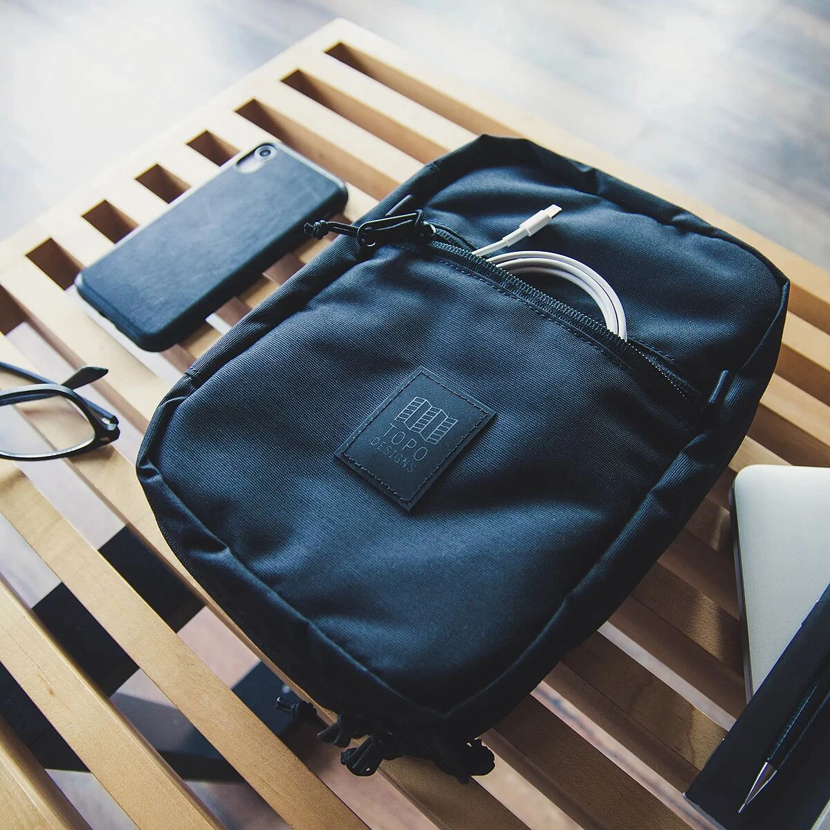 The hectic nature of traveling is made tolerable when we’ve got the Topo Designs Tech Case Organizer with us. Featuring enough space to stow a tablet, charging cords, reading material, or whatever else we feel the pull to bring along, this little zipper cube of goodness keeps us organized.