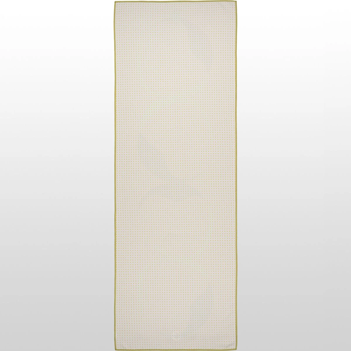 The Manduka Yogitoes Plus Repreve Mat Towel absorbs our sweat while offering supreme traction for our hot yoga